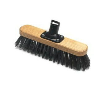 Varnished broom head with stiff plastic fill - ideal for sweeping caked-on mud, dirt, and moss