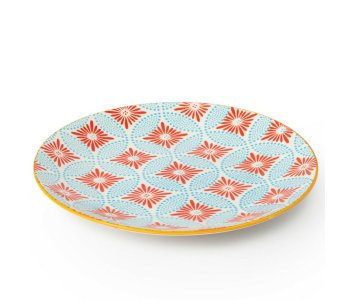 The bold red and blue mosaic pattern adds a contemporary touch to any table, enhancing both modern and eclectic settings