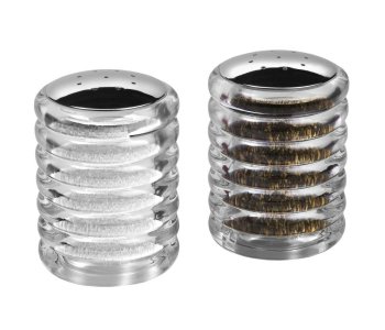 A set of simple yet stylish salt and pepper shakers made from acrylic with chrome plated tops