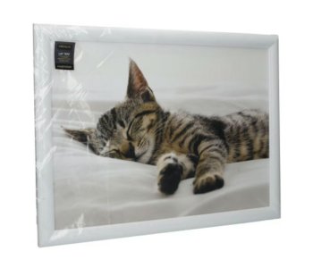 Perfect for sleepy morning breakfasts in bed, this gorgeous lap tray features a photographic cat design