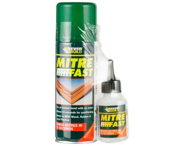 Mitre Fast Bonding Kit is a two-part instant adhesive system comprising a cyanoacrylate adhesive and aerosol activator