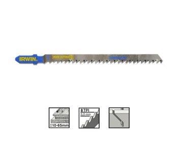 These Irwin 10504229 (T301CD) Wood Jigsaw Blades produce fast, fine cuts in hard and soft wood, particleboard, laminated particleboard: 4-60mm and plastics: 4-30mm
