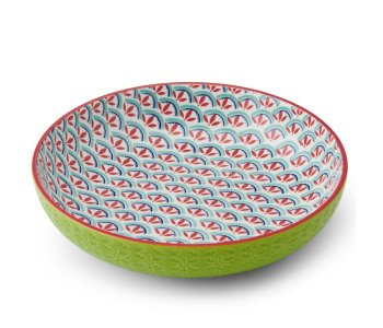 Add colour and charm to your dining with this vibrant stoneware bowl, crafted with a wide, shallow shape ideal for pasta, salads, noodles, stews, and more