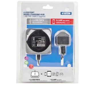 4 way charging hub, ideal for charging numerous USB devices all at once